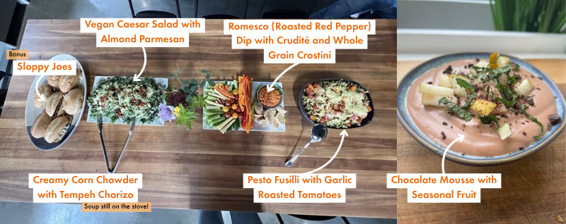 - Soup: Creamy Corn Chowder with Tempeh Chorizo
