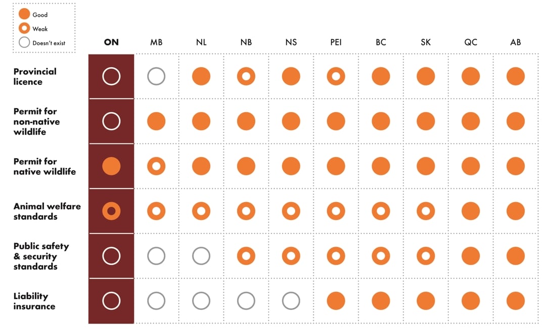 Ontario ranks dead last in Canada when it comes to ensuring proper care of captive wildlife.